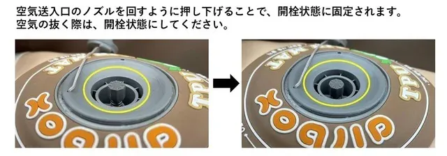付属のハンドポンプ使用において適切な圧力(0.8~1.2bar)で注入されているかご確認ください。中の圧力が不足している可能性がありますので、安全のために適正圧力まで空気を挿入ください。