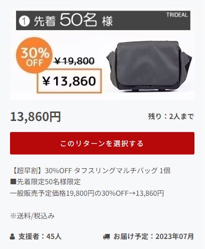 お陰様で一番割引き率の高いお得なリターンは、残りわずかになっております。
