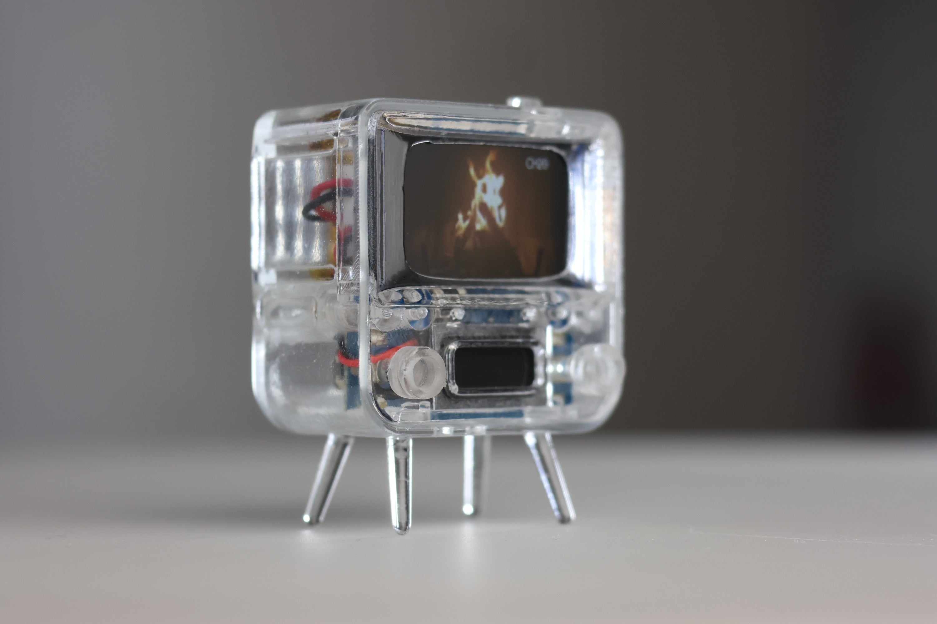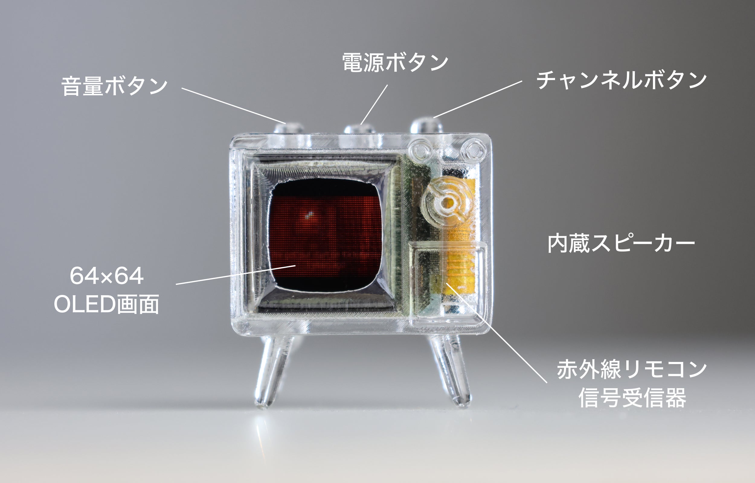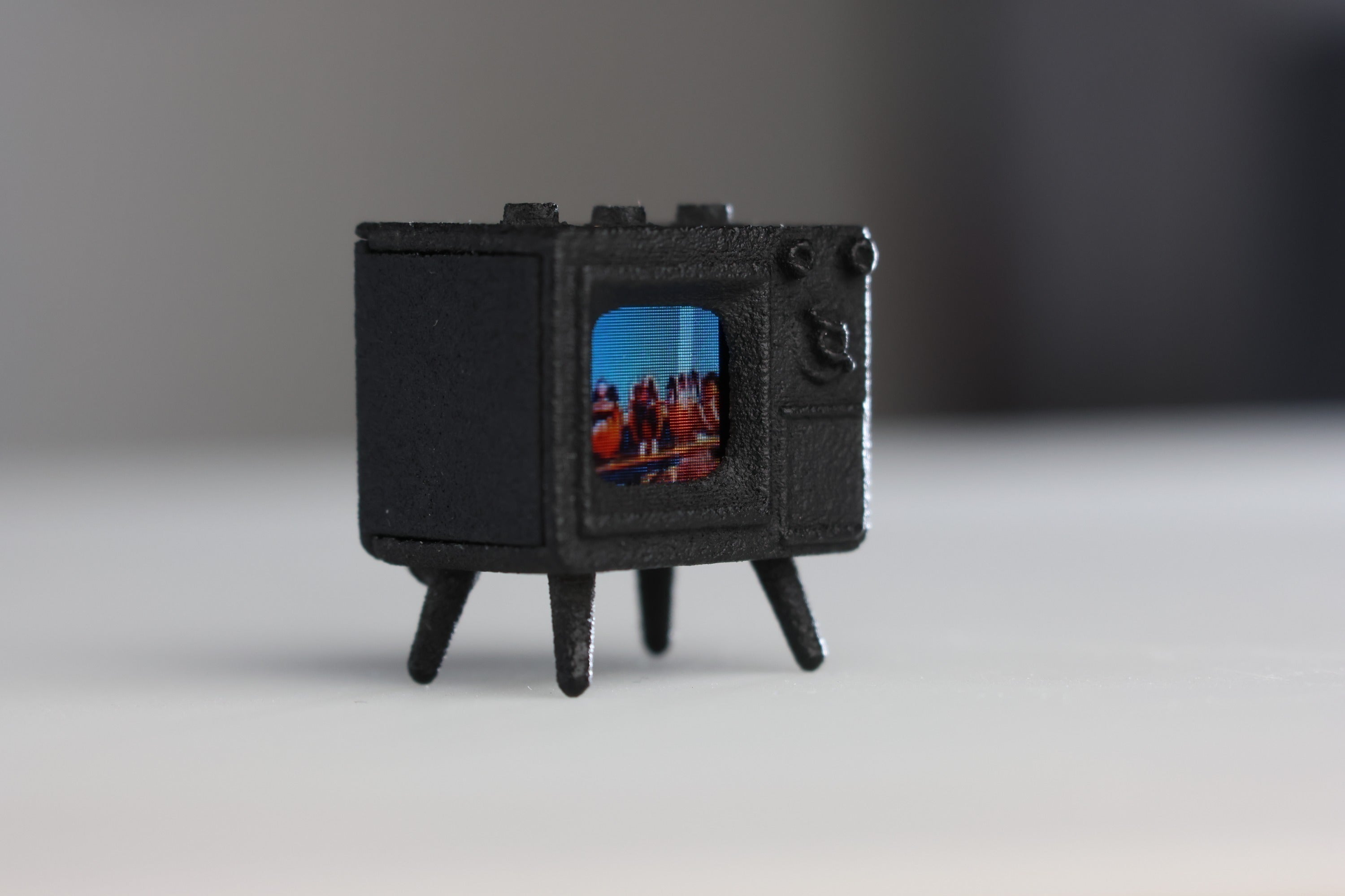 TinyTV 2とTinyTV Miniは、5年前にローンチしたTinyTV製品の最新バージョンです。東京に住んでいる「江成靖(えなり やすし)氏」は、ある日TinyScreen+を発見し、この小さなスクリーンを使って独自の小さなミニチュア作品を作り始めたのです。 彼が手掛けた作品の1つが、3Dプリントしたレトロなミニチュアテレビで、MAME-TV(豆テレビ)と名付けされました。