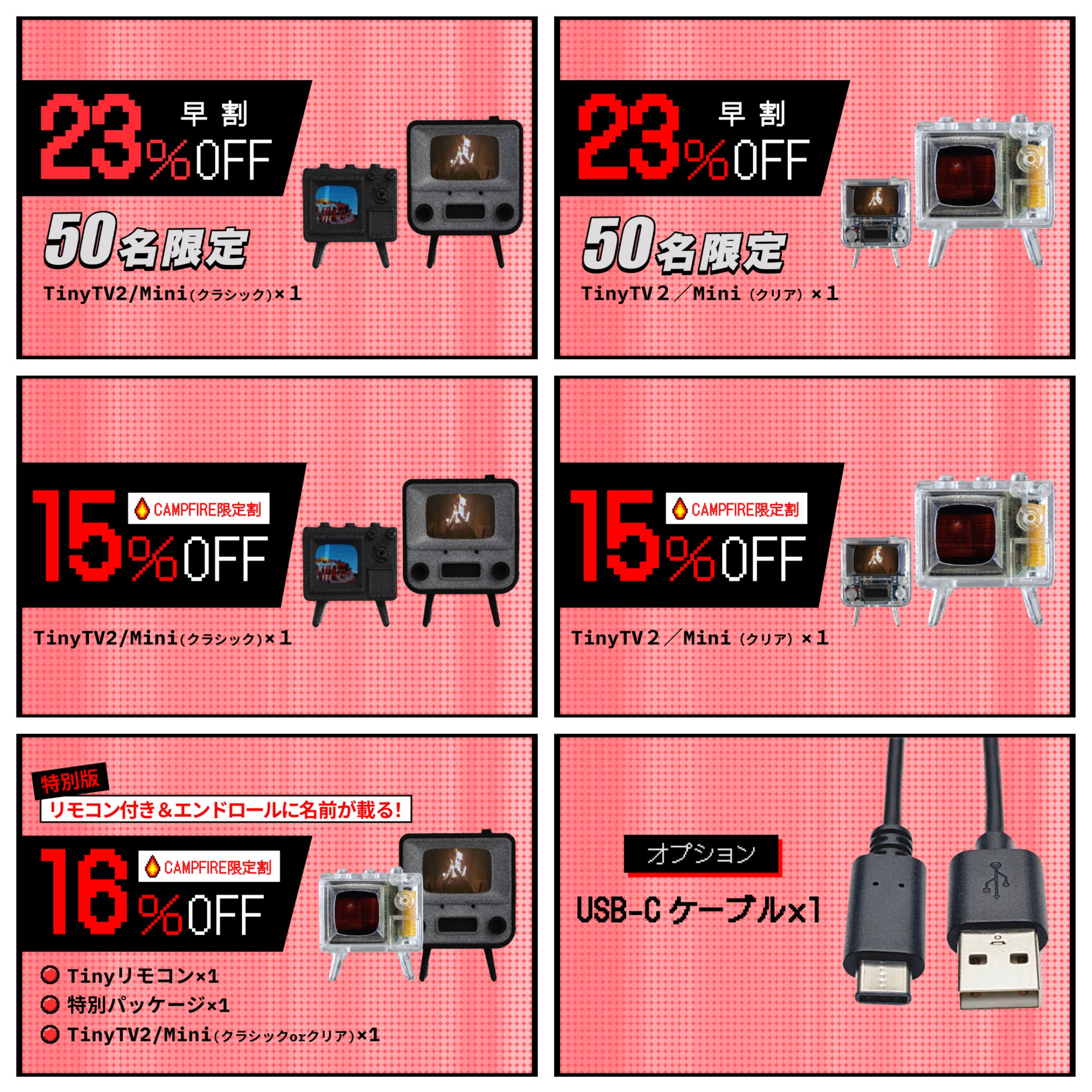特別版をご購入頂いたサポーターの皆様に、TinyTV2・TinyTV Miniのエンドロールに、事前にご提出頂いたお名前が載るという特別なサービスを提供いたします!