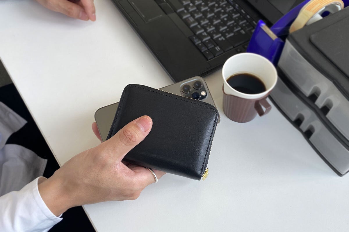 しっかり広がるポケットの口のおかげで取り出し易くお会計に小銭を探す手間も少なく◎