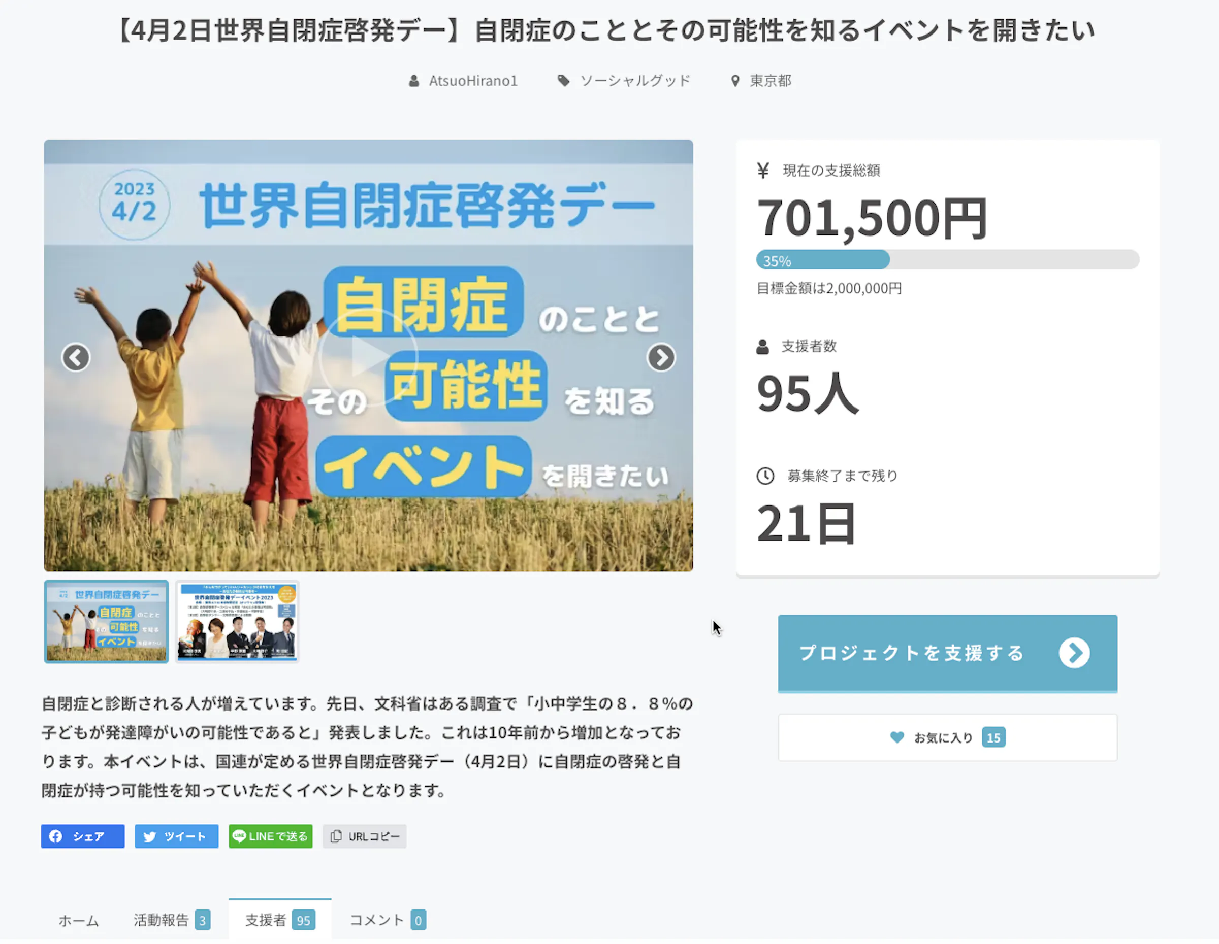 2月28日現在701,500円となりました!達成率35%!