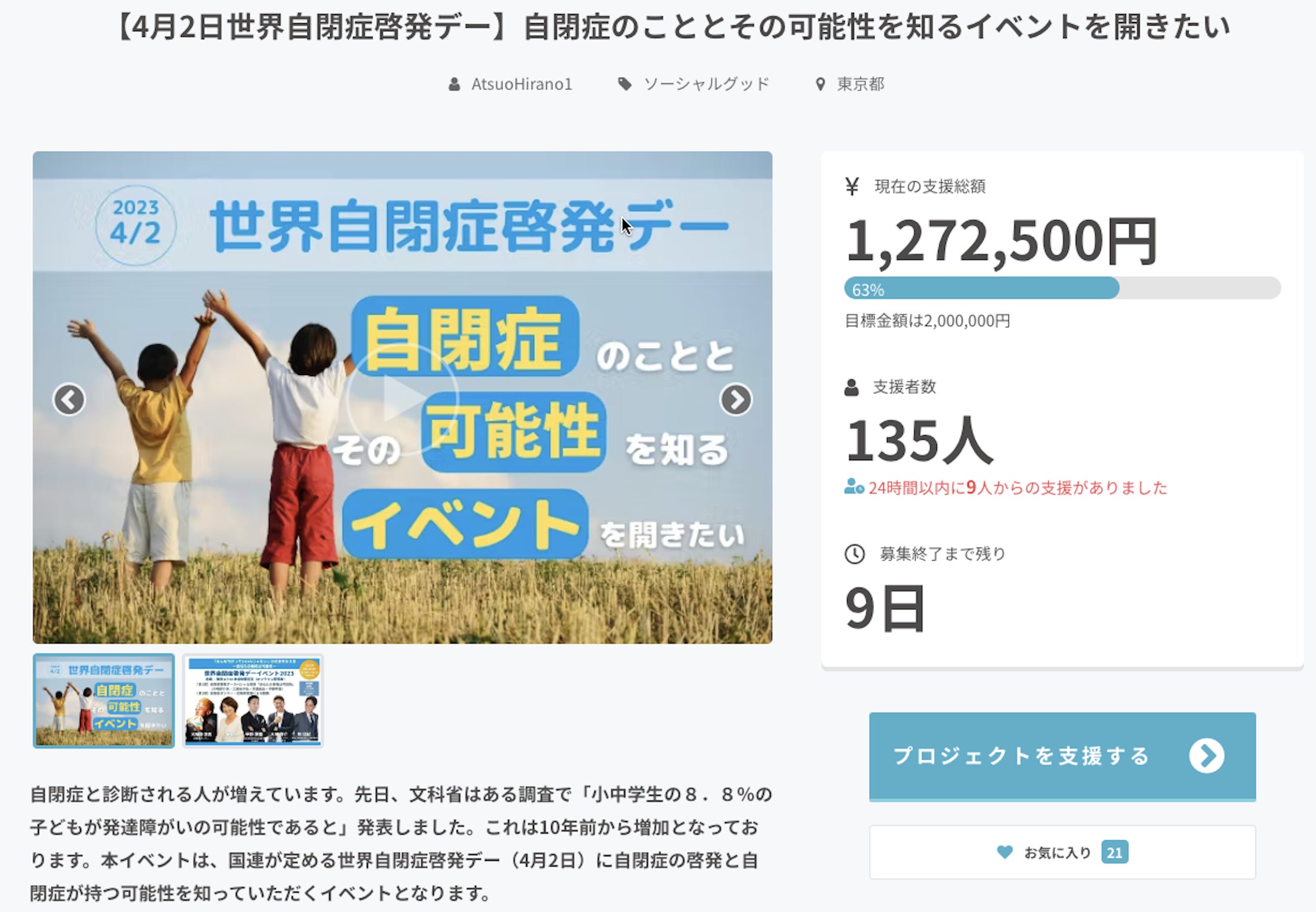 今回の“ご支援”により、たくさんの方に私たちの想いが届いたことを本当に嬉しく思うと同時に、応援してくださった135名(昨日報告から9名増)の皆様に心より感謝申し上げます。