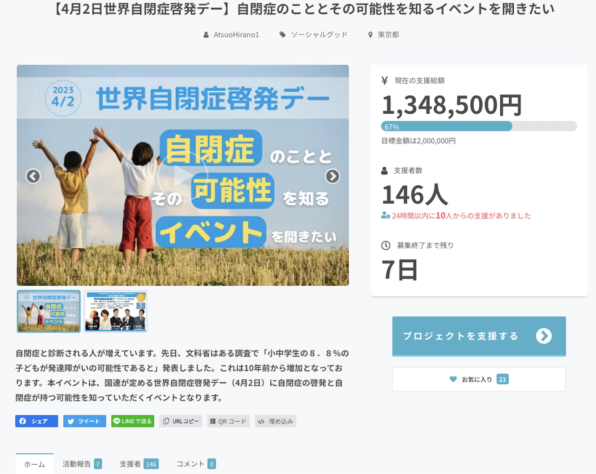 終了まであと、7日 3月21日まで引き続き応援お願いします。