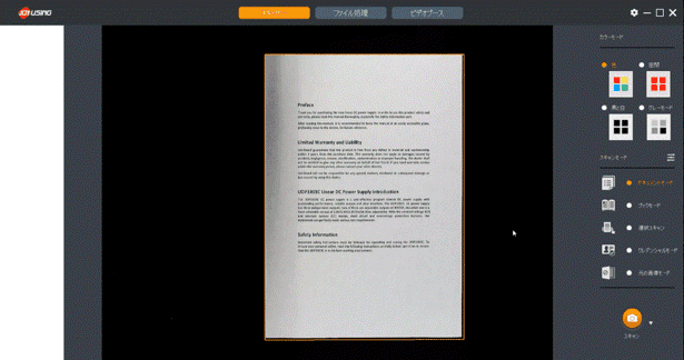 スキャンしたデータを必要な部分だけトリミング(切り抜き)できる機能です。別途画像編集ソフトを使わずに済み便利です。