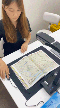パソコンのマウスや付属のハンドボタン、フットペダルを使って本をペラペラめくる感覚でリズミカルにスキャンが可能です。
