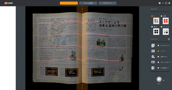 フラットベッドスキャナーで書籍をスキャンすると、どうしても中央の綴じの部分が歪んでしまいます。