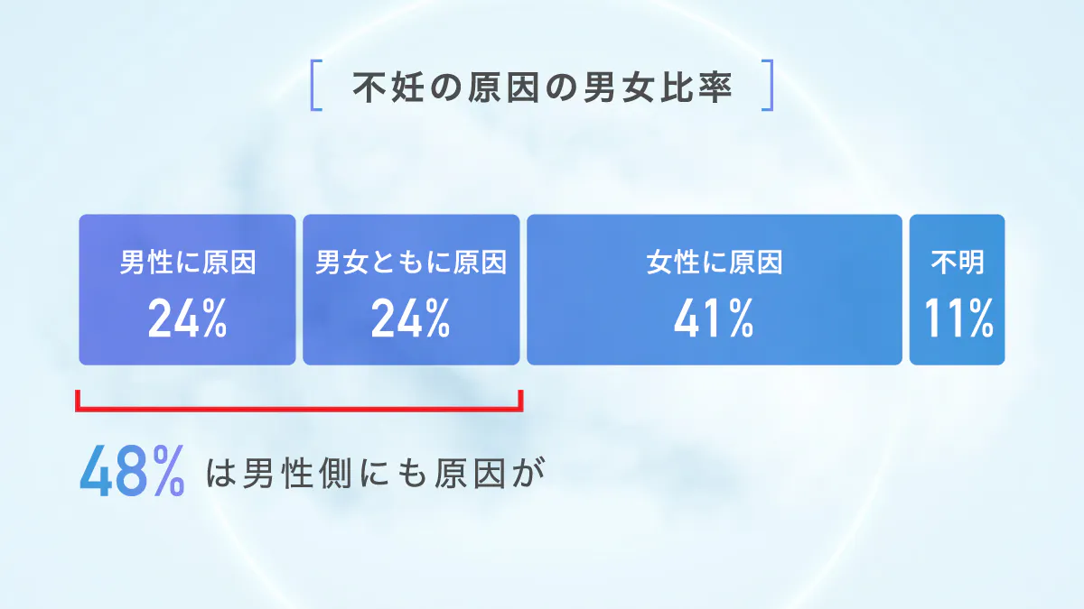 ただし、WHOの調査(不妊症原因調査)によると不妊夫婦うちの、48%は男性側にも原因があるという結果が確認されました(※ソース1)。