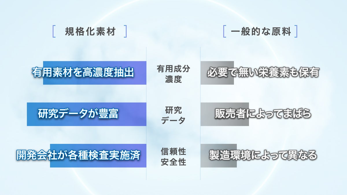 海外のハイエンドサプリメントブランドが注目している規格化素材のパワーを是非ご体感下さい。