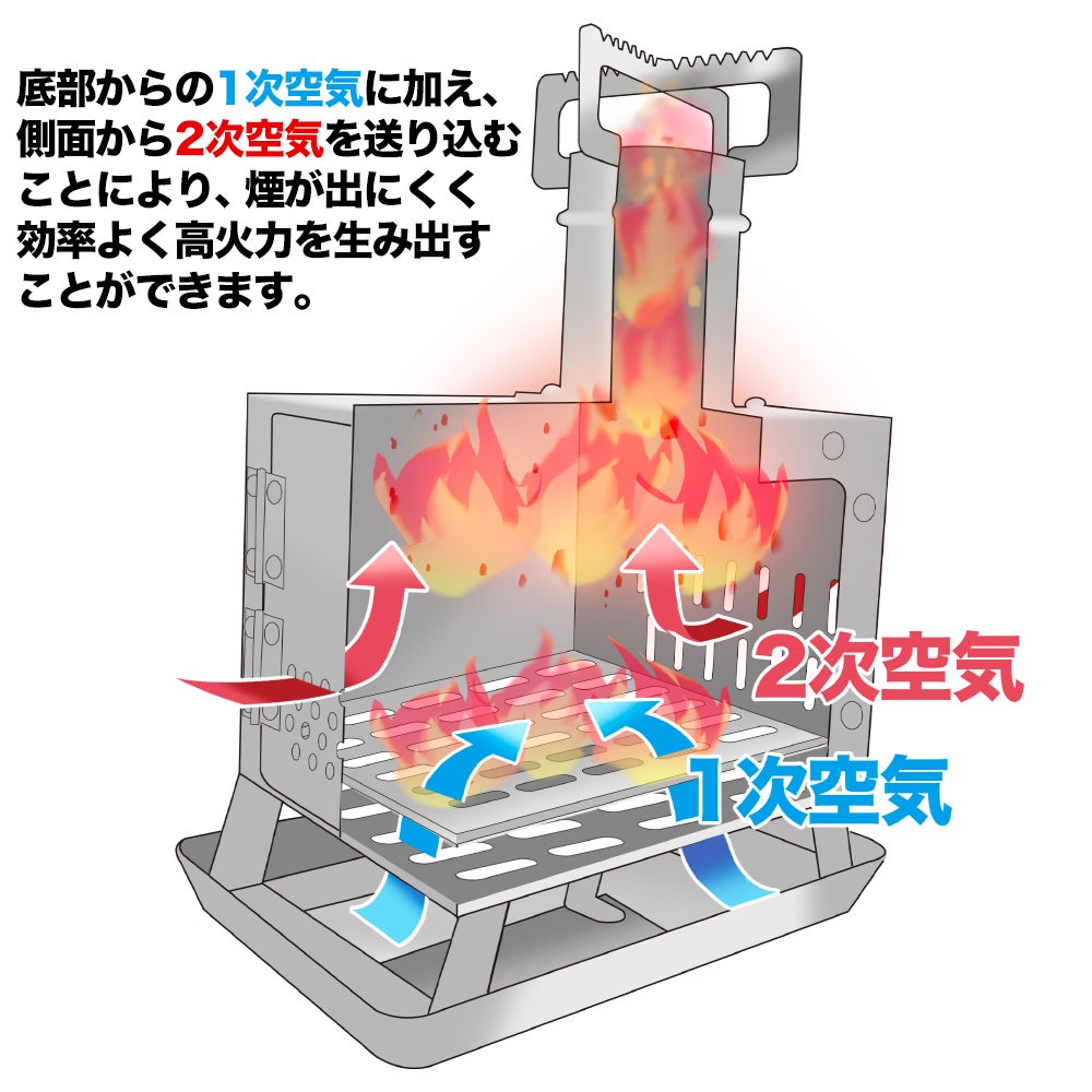 二次燃焼効果により、コンパクトながらもしっかりとした火力を生み出せる。