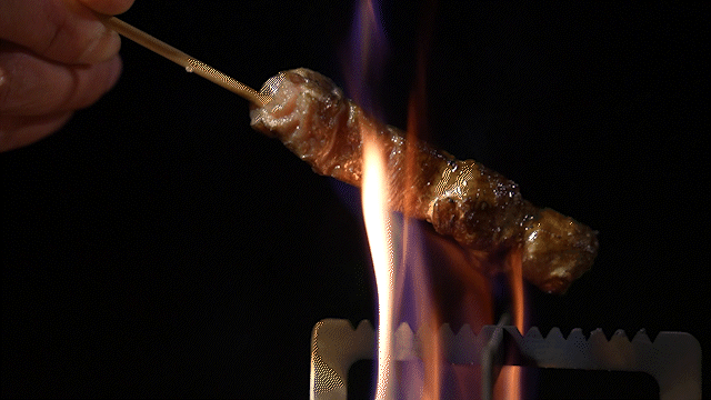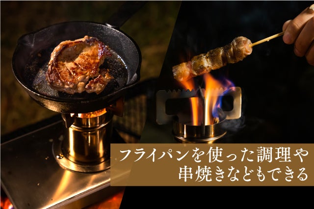 小型ながら十分な火力があり、串焼きなど簡単な調理も可能。