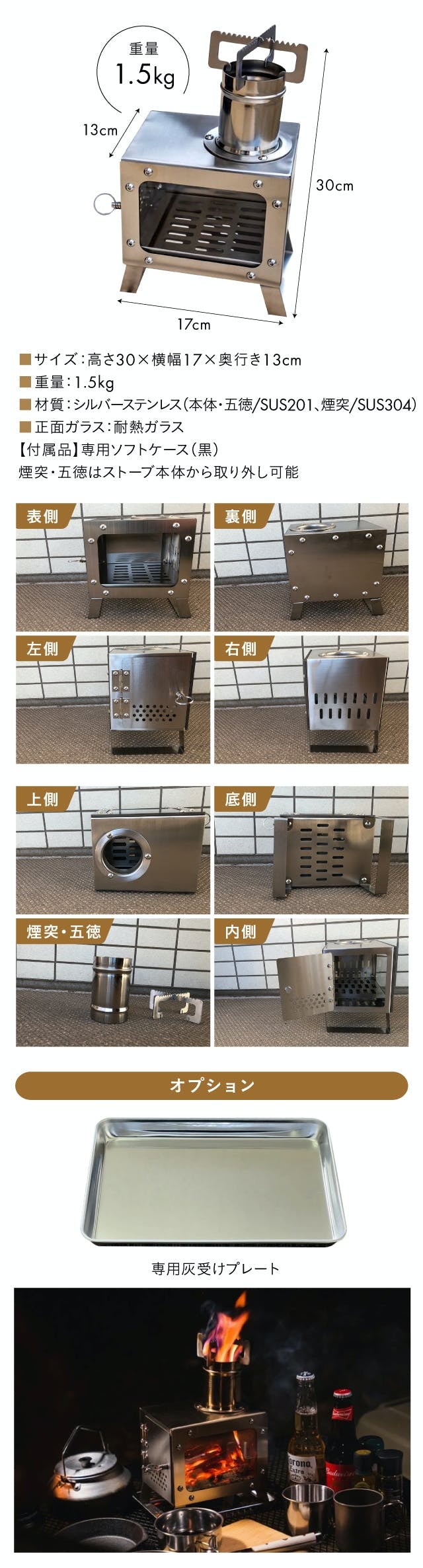 今回の製品リリースにあたり、ストーブ本体の金具留め本数を倍増させることにより、耐久性をより強化させ、しっかりした作り込みを目指しました。小型・軽量で扱いやすい製品ですので、多くの方にご愛顧いただけますと幸いです。どうぞよろしくお願いいたします。