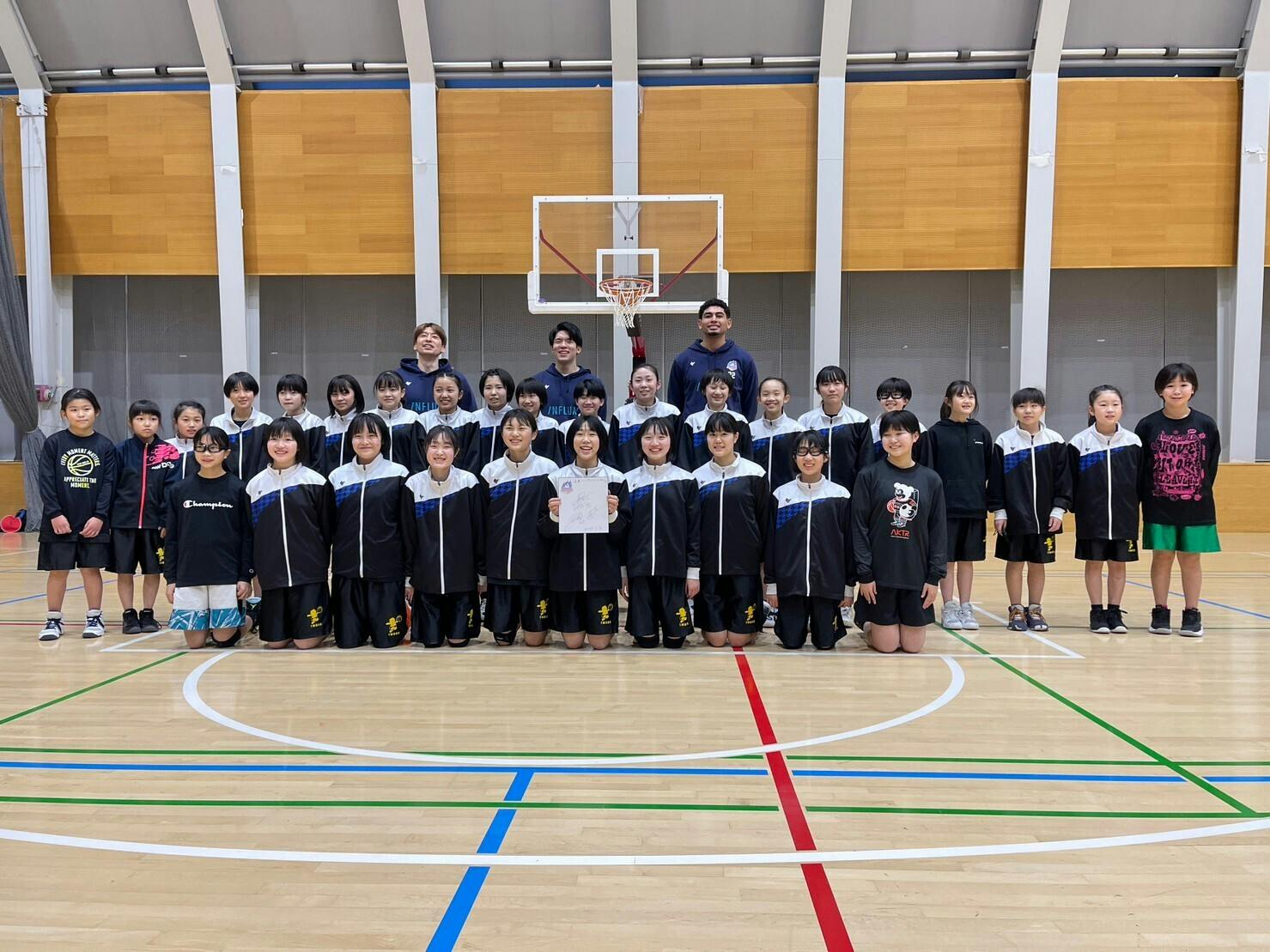 そしてこの施設のメインアリーナは4日に試合観戦に招待してくださった青森ワッツの本拠地。今週末に行われる試合の練習の合間を縫って下山大地選手、内田旦人選手、マックス・ヒサタケ選手のご三方が激励に来てくれました。