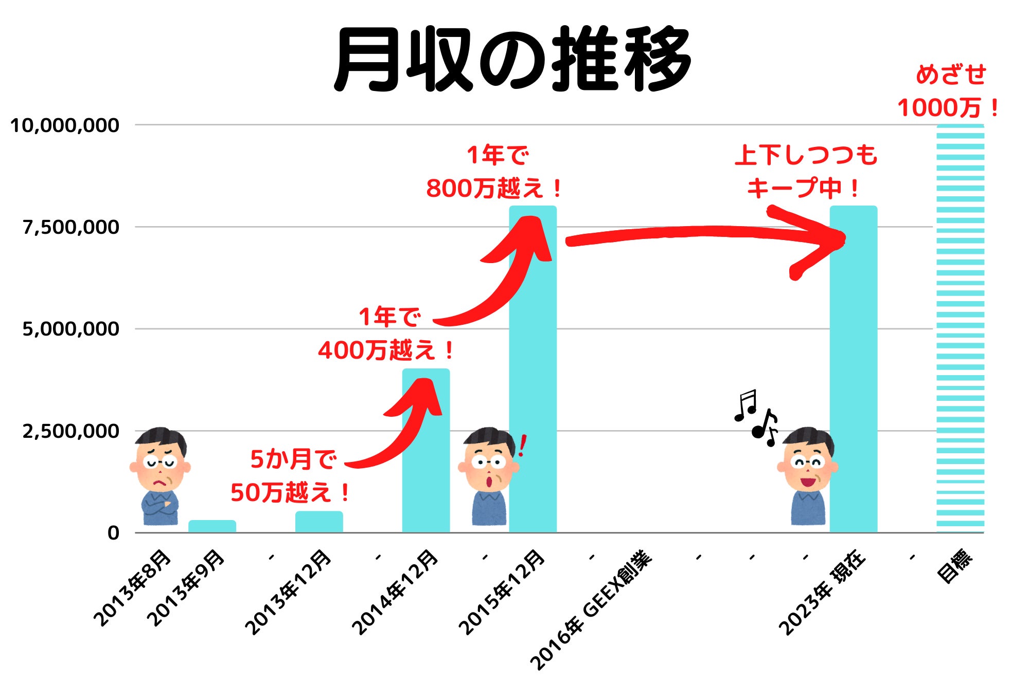 ビジネスを始めて2か月目には、収益は会社の月給28万円を越え、5か月目には50万円を越えました。先にも書いた通り、50万を越えた1年後は月収400万、2年後には月収800万と、大きく利益を伸ばすことに成功したのです!