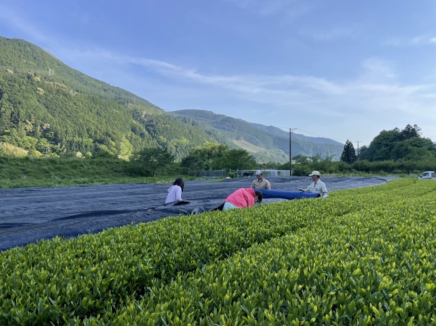 私たちは、お茶作りの素晴らしさや大変さと同時に、こうした課題について、茶葉の収穫作業や被覆作業をお手伝いする農業実習を通して知りました。