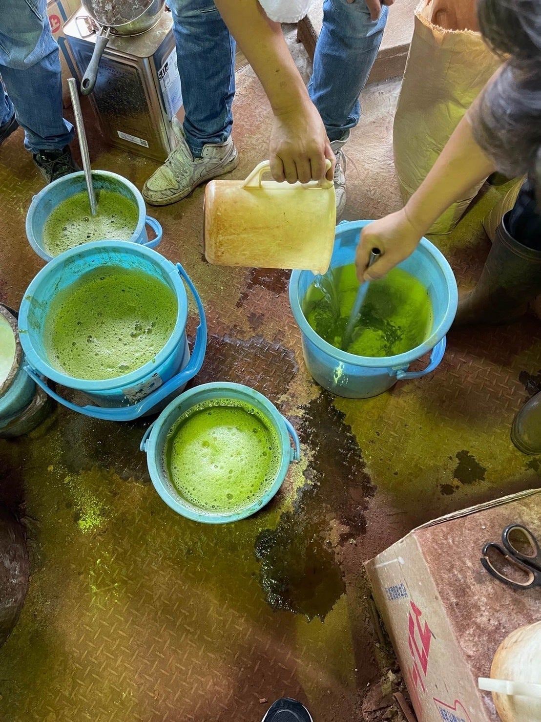 抹茶の栽培現場で感じたこの想いがきっかけで見つけた再利用の道が、抹茶染めです。