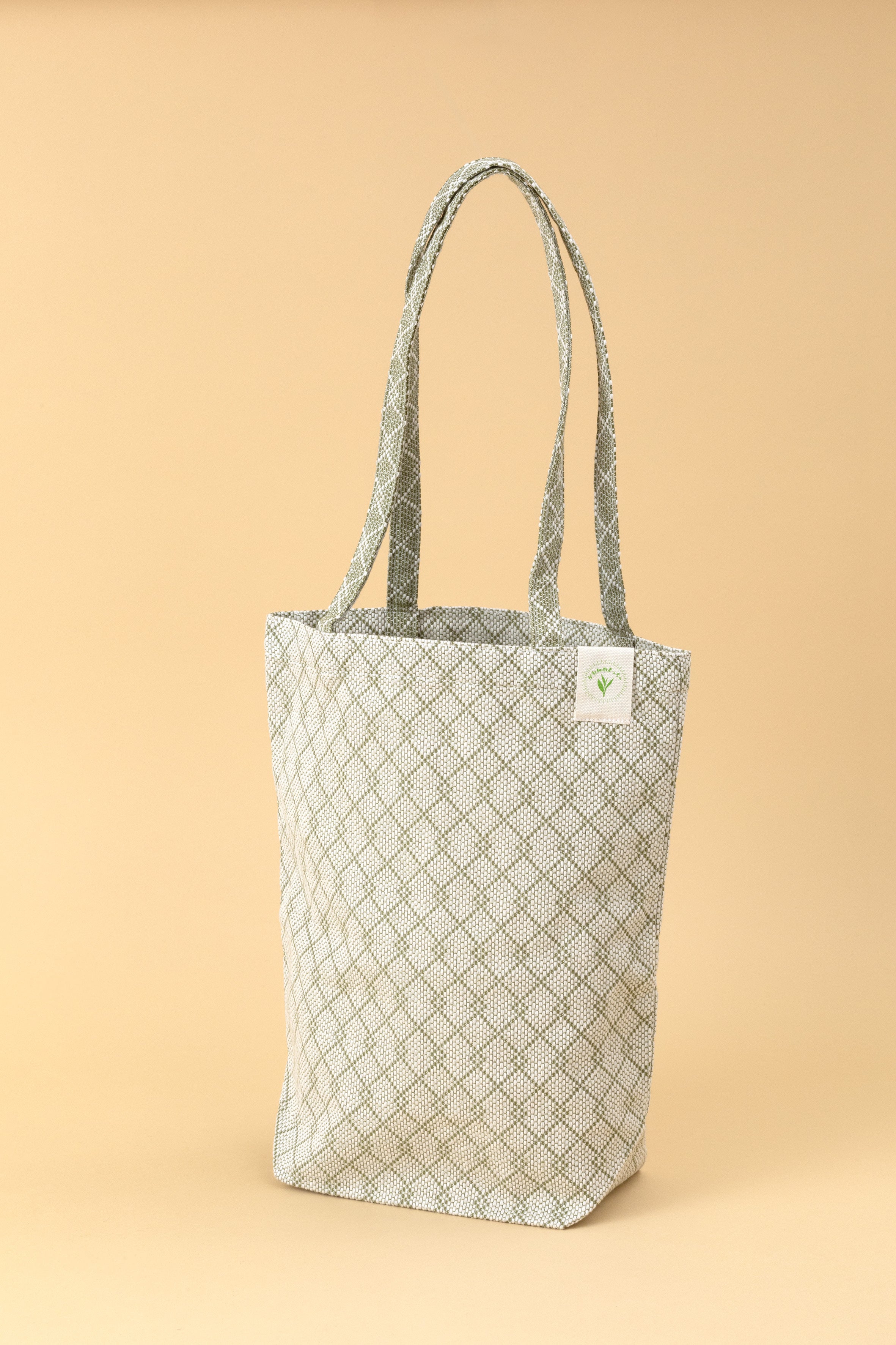 本来廃棄されるはずだった抹茶を糸染めの原料にして、日本の伝統的な刺し子織りで仕上げました。