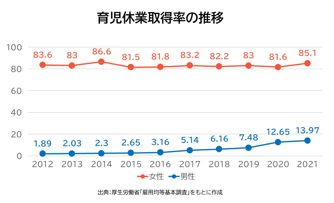 日本における男性の育休取得率は、年々上昇しているとはいえ、令和3年度でまだ13.97%。さらに、仕事を中心とした普段の生活とのギャップに戸惑い、せっかく育休を取ったけれど本人やパートナーが想定していたほど家事・育児に関われなかったという人も少なくありません。今後は育休取得率の上昇とともに、男性の育休期間の”内容の充実”も期待されています。