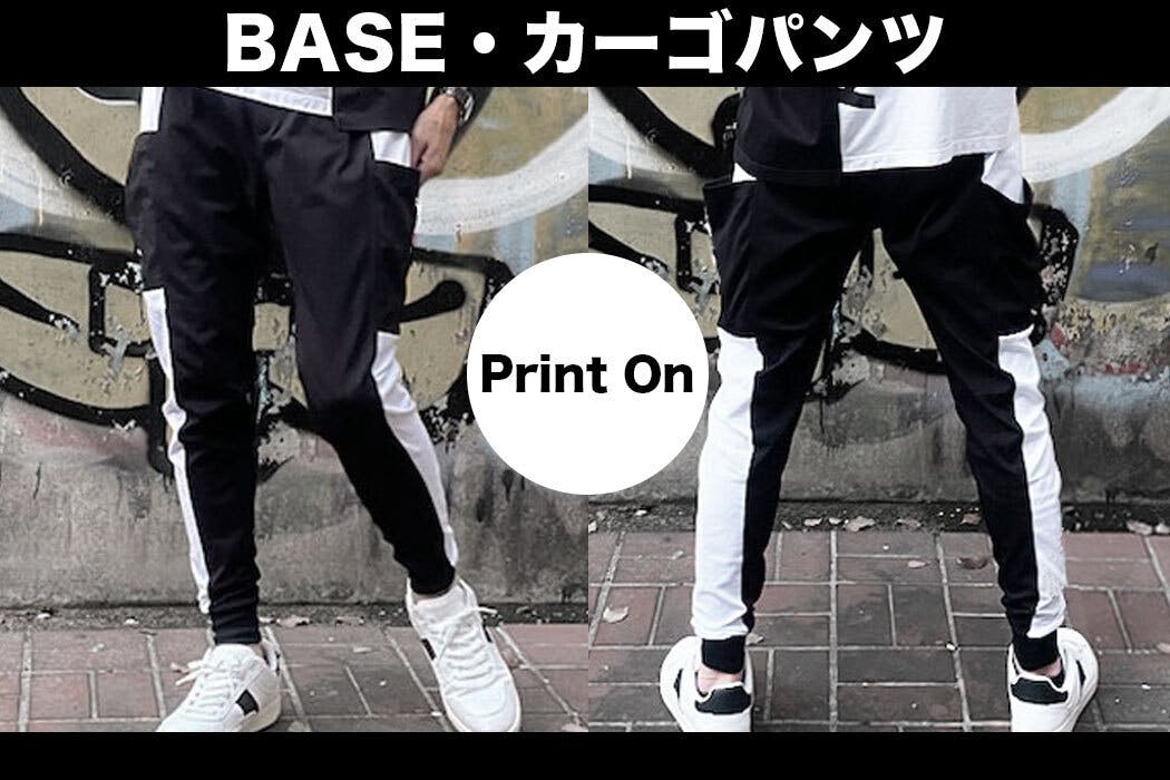 ベースになるカーゴパンツのサイズからご相談の上、セミオーダー後加工プリント製作いたします。