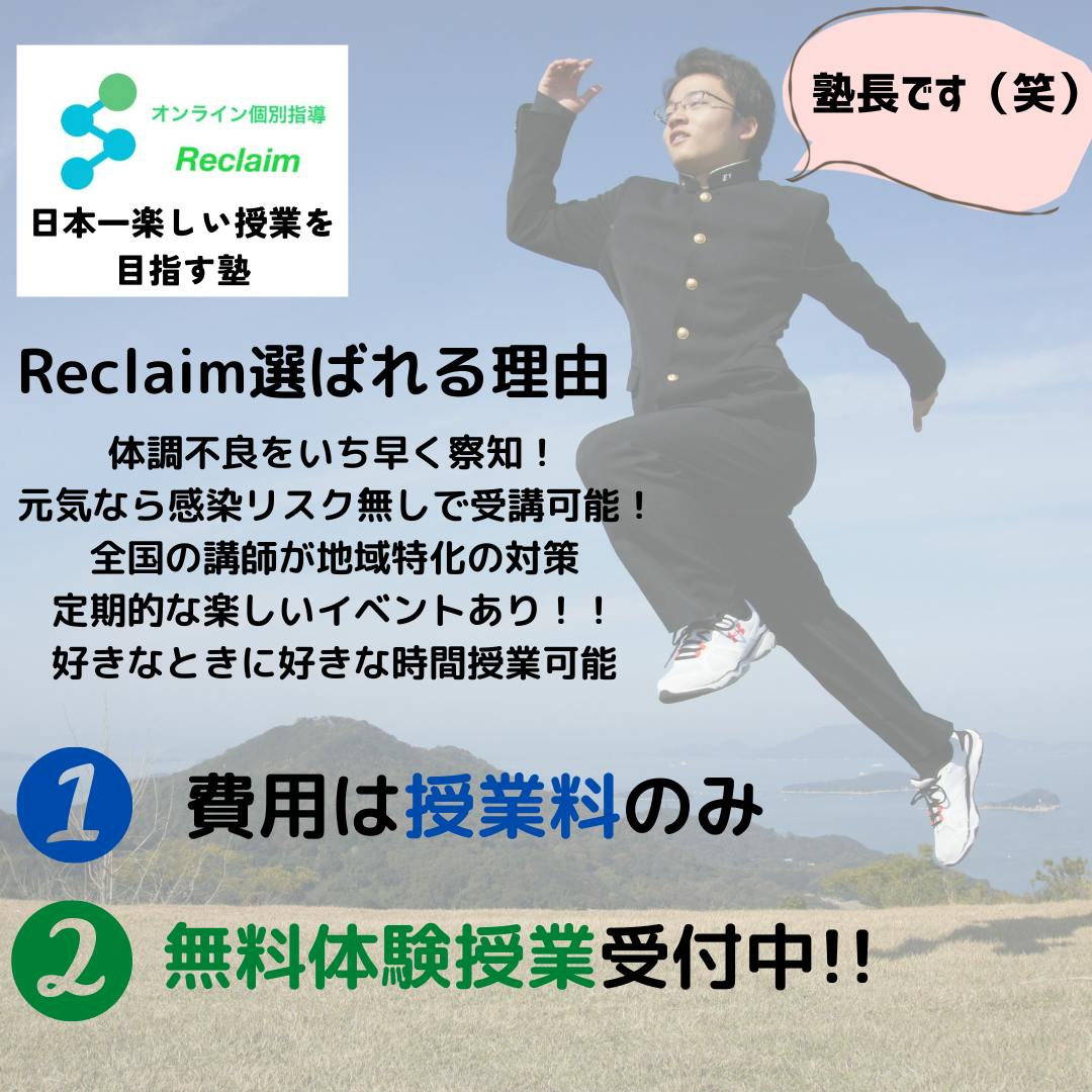 2020年8月25日にオンライン個別指導Reclaimを起業。