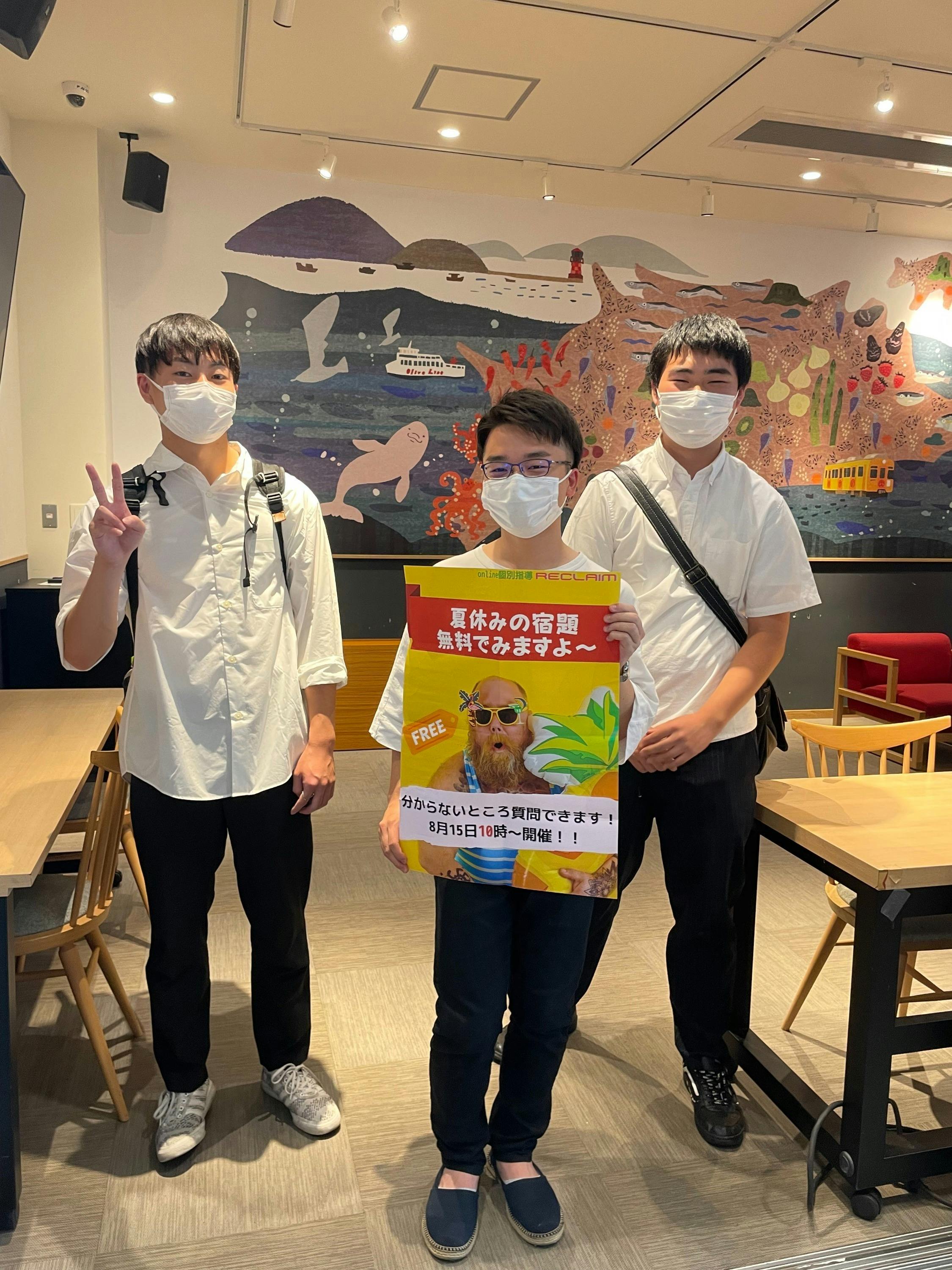 初めまして。香川県で生まれ育ち、現在は大阪の大学に通いながらオンライン個別指導Reclaim塾長をしている22歳の真重寛太(ましげ かんた)と申します。