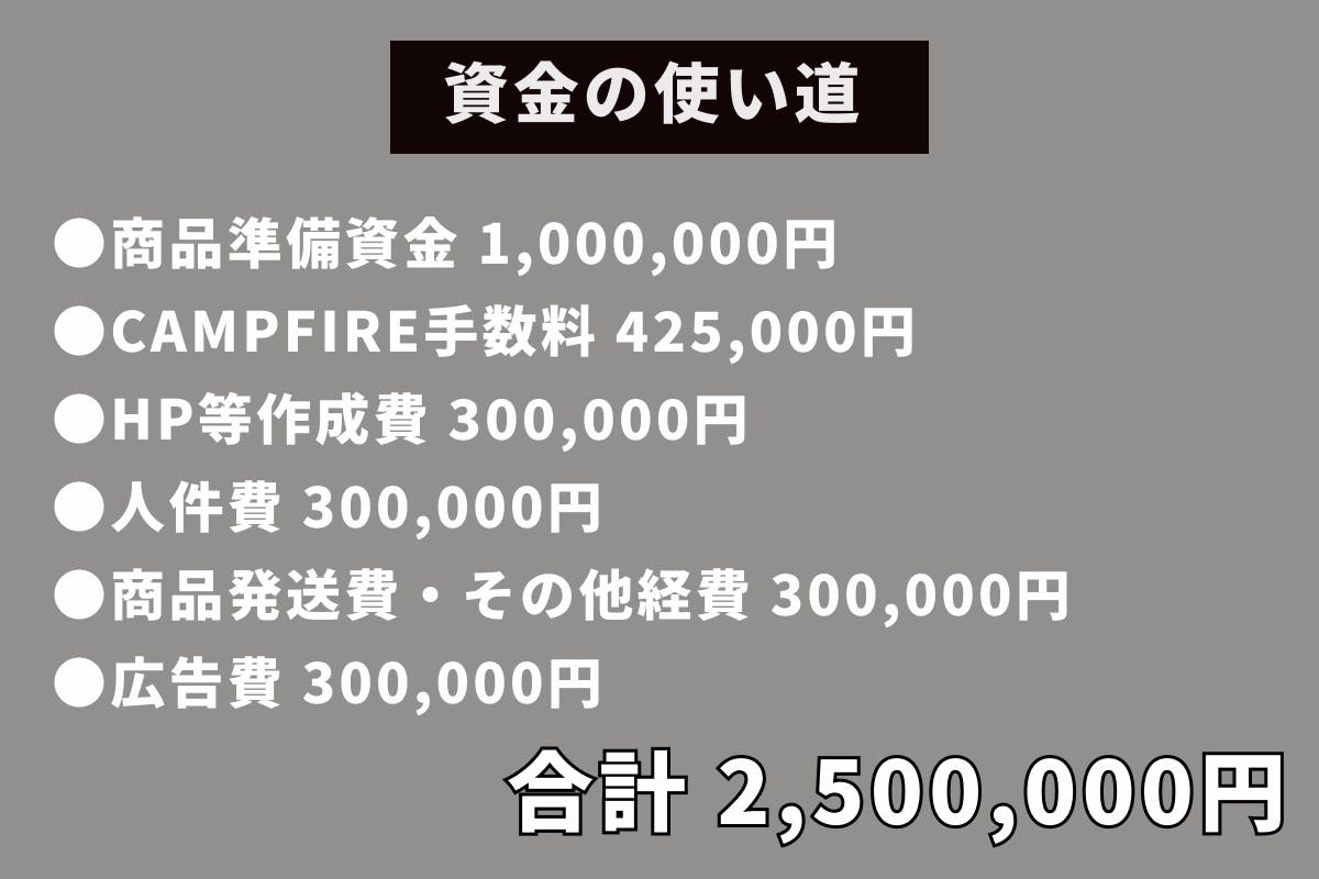 目標予算としては2,500,000円を予定しておりますが支援額に超過分が発生した場合は