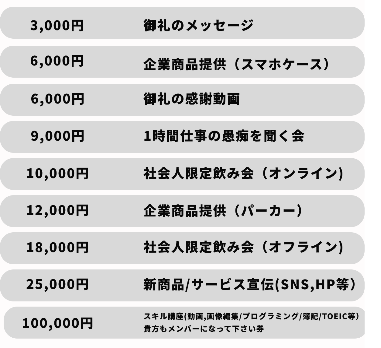 1人でも多くの方に、そして1社でも多くの企業様の支援が出来るよう、皆様のご支援をお待ちしております。