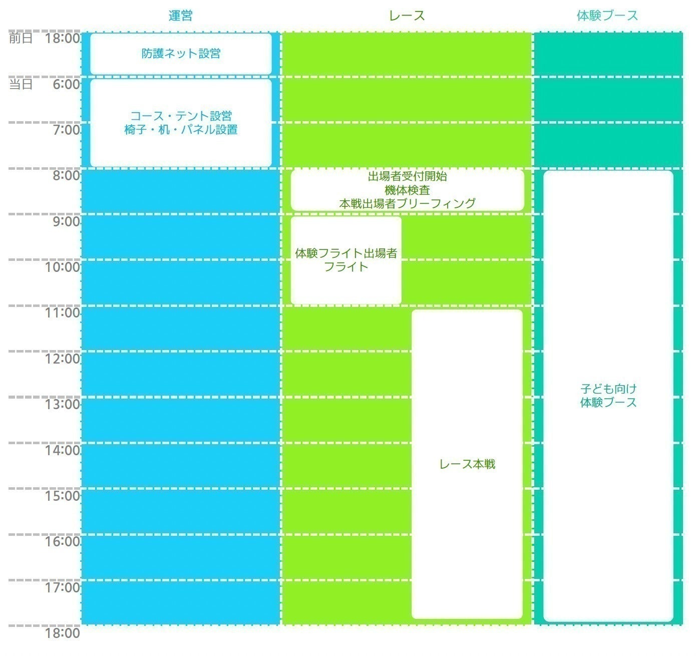 これらを行うことにより、ドローン レーサーだけが楽しむものではなく、観客も一緒に楽しむことができ、ドローン レーサー自身もより新たな楽しみとより技術を高める意欲に繋がります。