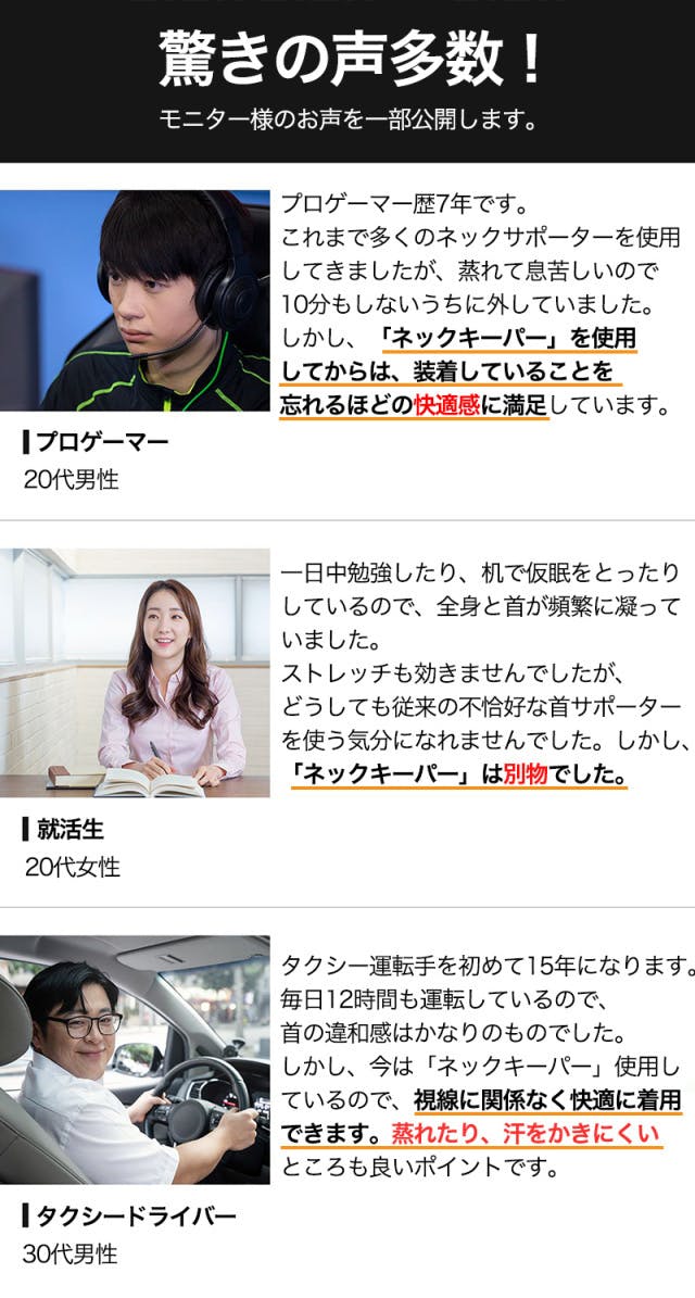 ネックキーパーを使用すると正しい姿勢で過ごす時間が増えるので、整体やマッサージに行く頻度を減らすことができ、経済的です。