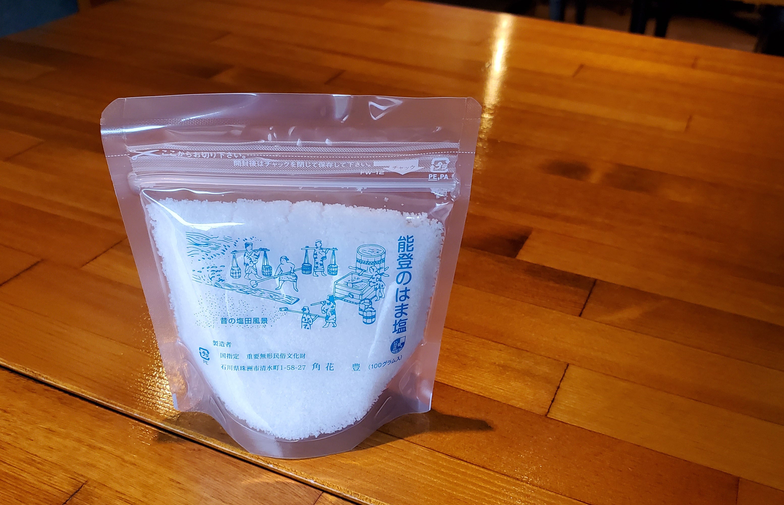 お店のピッツァや料理には、名前の由来でもある「角花家の塩」を使用しています。