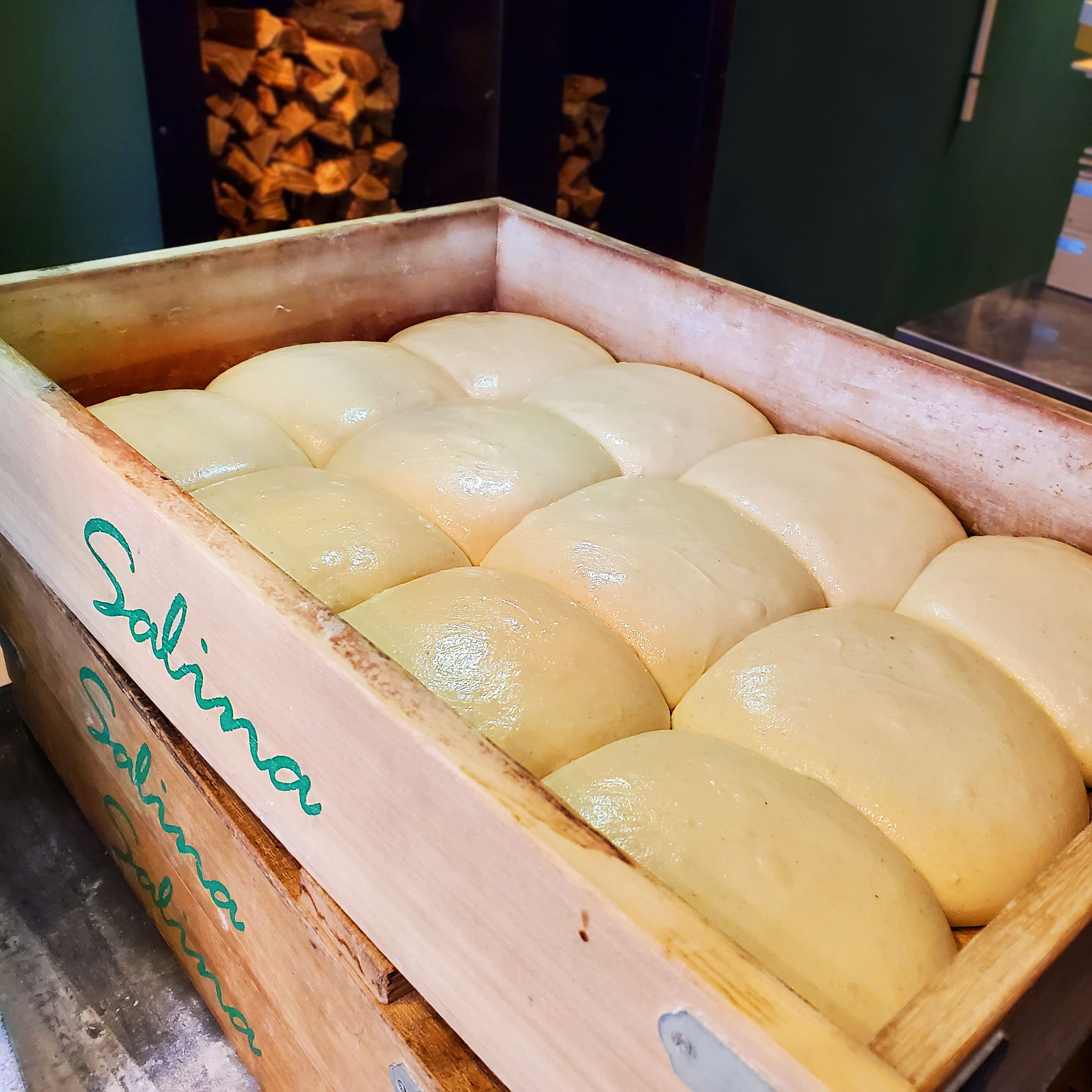 その上で、木箱で寝かせ24時間発酵させて出来上がった生地を使っています。