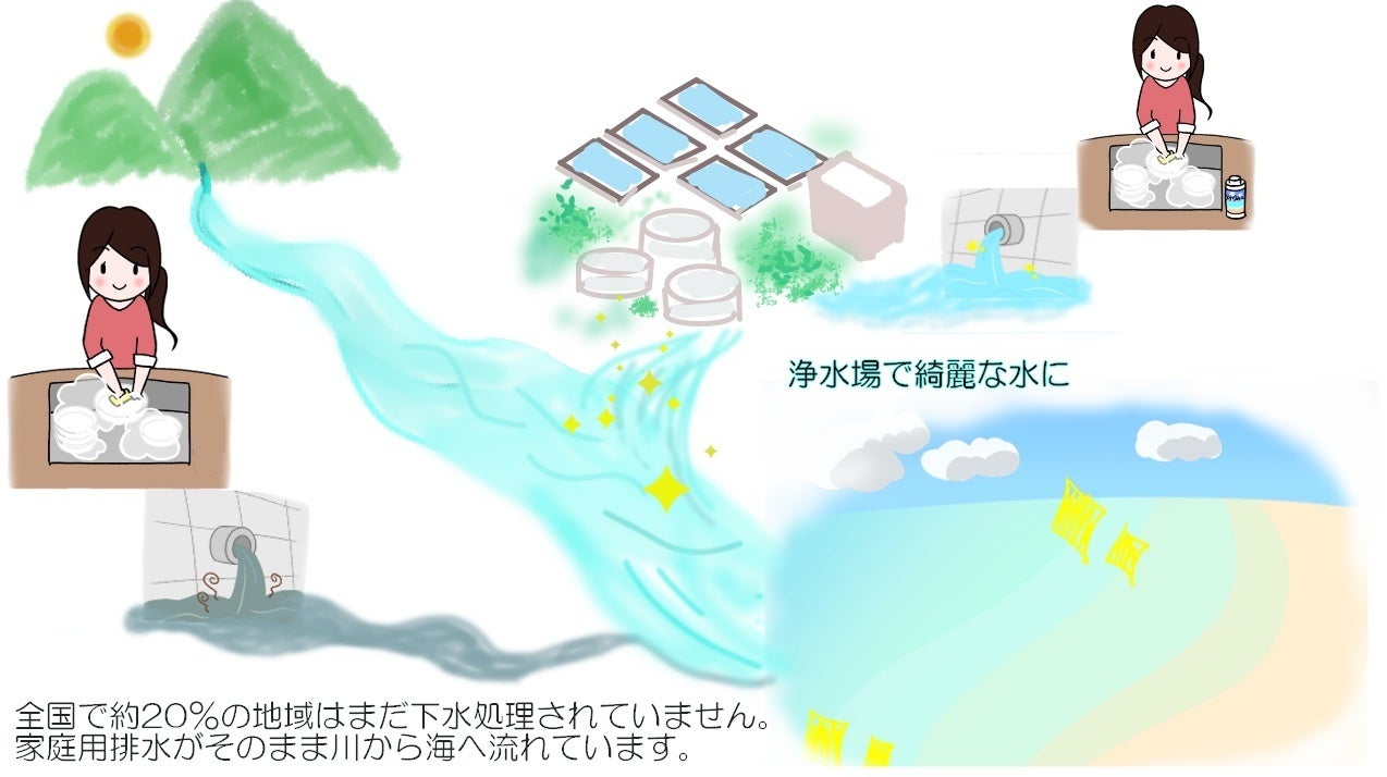 全国の20%は、まだ下水道処理のされて無い家庭用排水が、そのまま自然の川や海に流れてます。