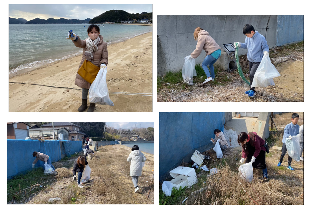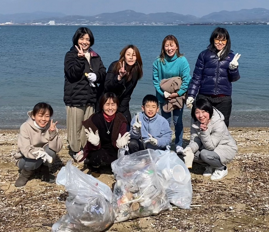 家庭排水だけで無く、海へ行きゴミ拾い活動を行っています。