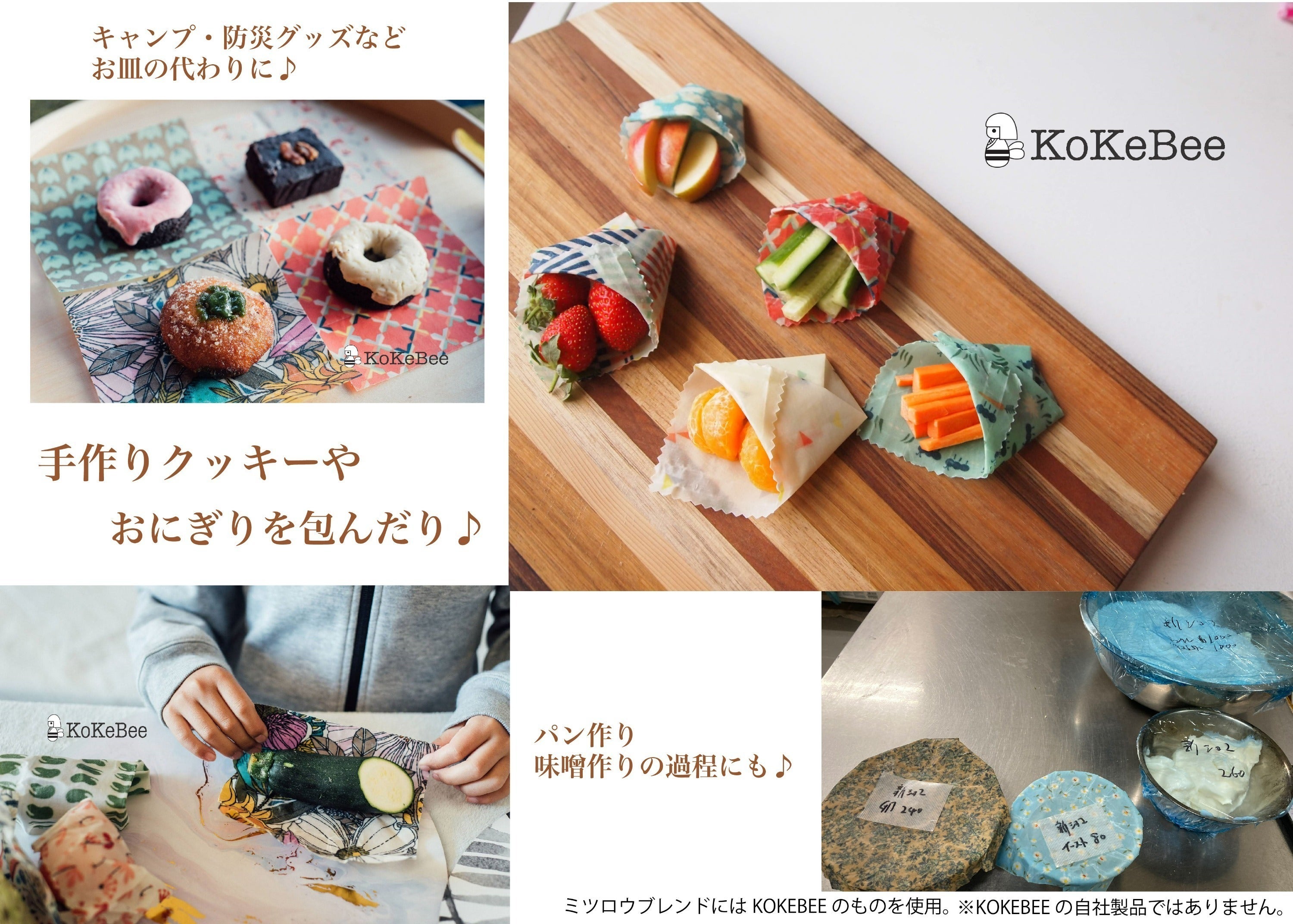 全て天然の原材料に綿100%の布に染み込ませた食用ラップです。
