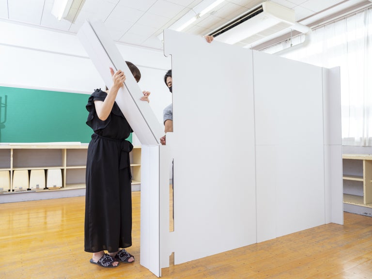 『ありそうでなかった「白」登場 避難所の段ボールパーテーション』