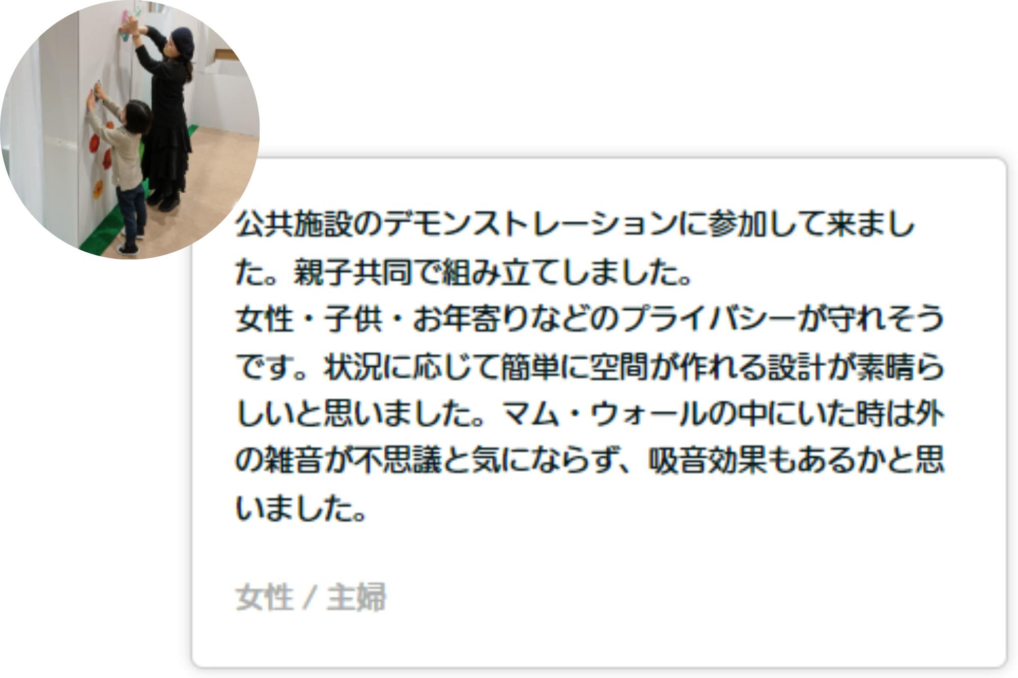 マム・ウォールは、「工具なし5分で組み立てられる白段ボールパーテーション」。「守る壁(まもぉ~るかべ) 」と「ママの壁」という意味を込めて名付けた、プライベート空間です。