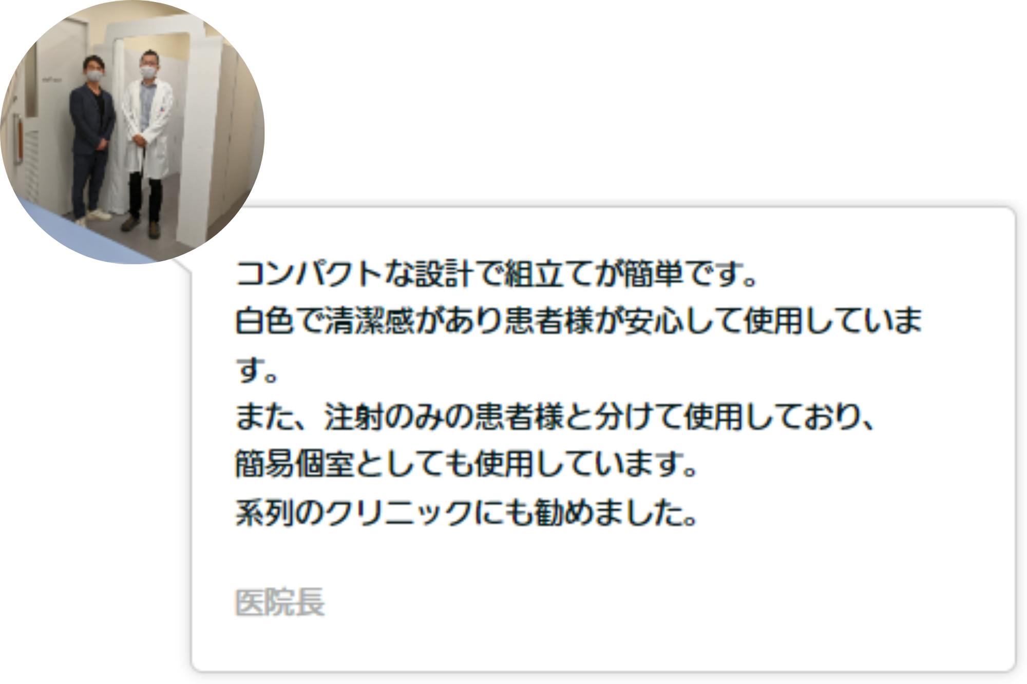 中小企業の集まりで展示させていただいたところ、参加していた脳神経内科の先生が「これはいい!」と言ってくださり、そちらに第1号で納入させていただきました。それ以来、クリニックの診察室やフィッティングルームなどで少しずつ使っていただけるようになりました。