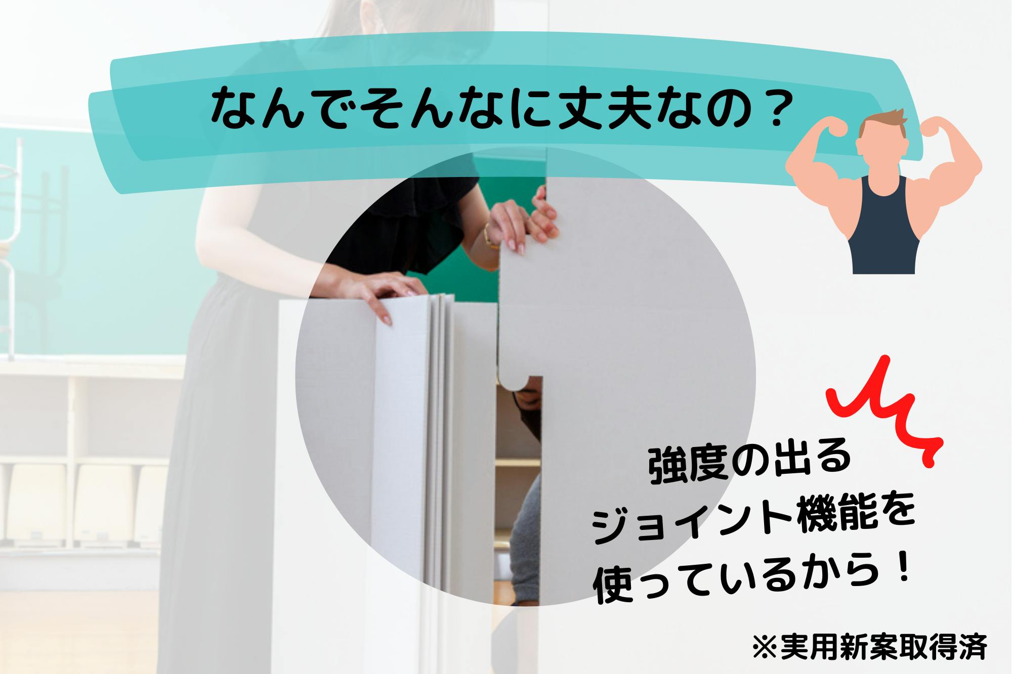 すでに段ボールメーカーさんで販売されているパーテーションは、確かに頑丈かもしれませんが、組み立てには3人以上必要だったり、20分以上時間がかかったり、専用工具が必要だったりするものばかり。