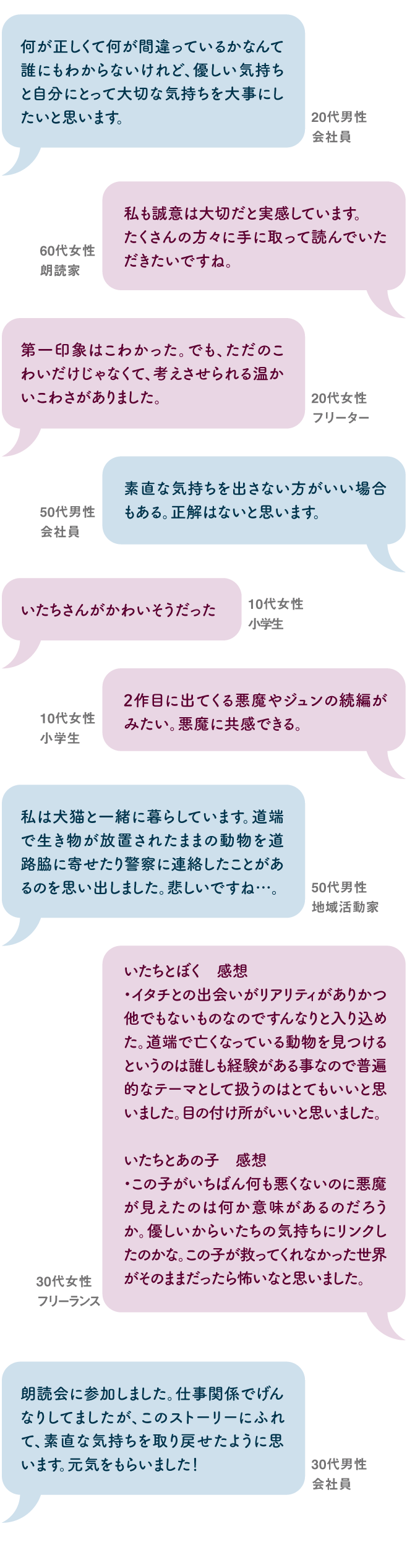 3.このプロジェクトを見たり本を読んだ方から、どこそこで朗読会をしてほしい!と、メッセージがくる