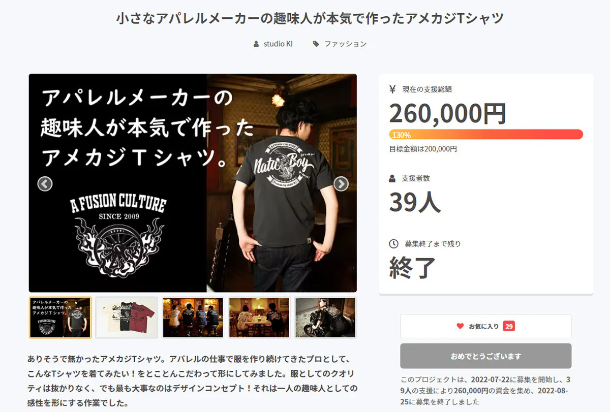 A FUSION CULTUREが展開するアメカジブランドを続けていきたい! 支援金は次に新作の製作費に投入して第3弾につなげたいと考えています。