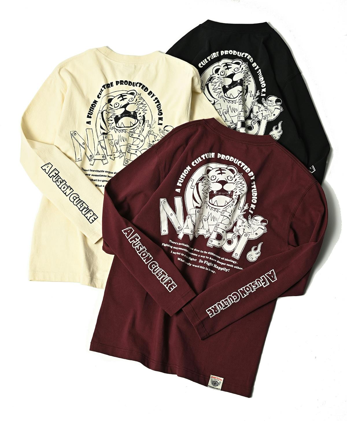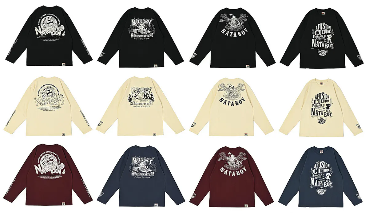 2023/02/25 12:00順調なスタートを切ることができたクラウドファンディング!ご支援頂き誠にありがとうございます! 嬉しいです(^▽^)/最後まで宜しくお願い致します。前回に引き続き抜染プリントについて少しオフホワイト以外の色は全て抜染プリントで作っておりますがプリントする版について少しご紹介をグラフィックをプリントする場合、印刷の版を作る必要があります。複製をくり返すためのハンコを作るとイメージして頂ければ近いですが一つのグラフィックに版を作って、色んな色の身生地のTシャツに印刷していきますshadow nata のグラフィックは同じ版で印刷されています。オフホワイトの黒インクが、抜染では色インクでプリントされていることが分かります。こういったベタ塗りのグラフィックの場合は特に見え方に違和感はありませんが、これがイラストになると見え方に影響があります。パッと見た瞬間にキャラクターが見やすいのはオフホワイトのプリントになります。仕方ないことではあるのですが、抜染プリントにも見え方をどうにかできないか?そこでイラストだけを反転させてプリントさせる工夫をしてみた次第です。パッと見でキャラクターの見やすさは同じようになりました(^▽^)/つまり抜染用に版を別に作る必要があるので、コストや手間がかかりますがやっぱりこっちが良いとなって採用することにしました。抜染はしっかり生地に馴染んで一体化したプリントなのでおススメです!今回のロンTも版を作り替えたグラフィックが多いです!是非とも抜染の良さを着用で体感して頂ければと思っております! もっと見る