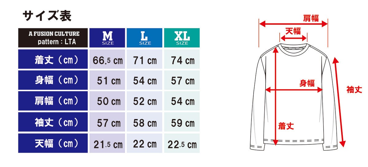 ※製造工程における理由により記載のサイズから誤差が生じる場合がございます。どうしても避けられない部分ですが、1㎝~2㎝迄として検品をしておりますので、若干の個体差があることをご了承下さい。※アメリカンサイズではなく日本でも標準的なサイズ感ではありますので、お手持ちのTシャツと比較などして頂いて間違いのないように十分確認の上「サイズ×カラー」の組み合あわせをお選びください。