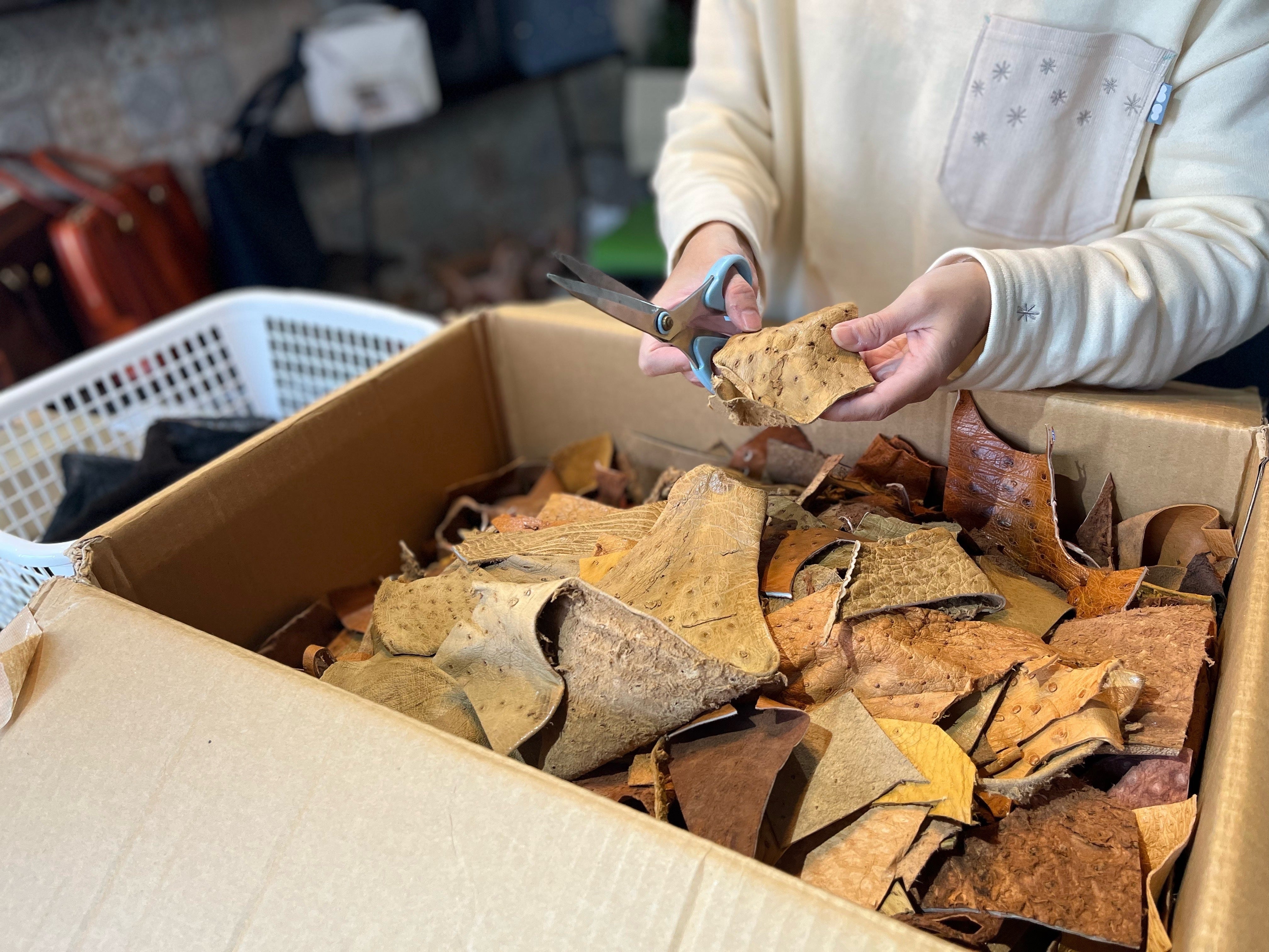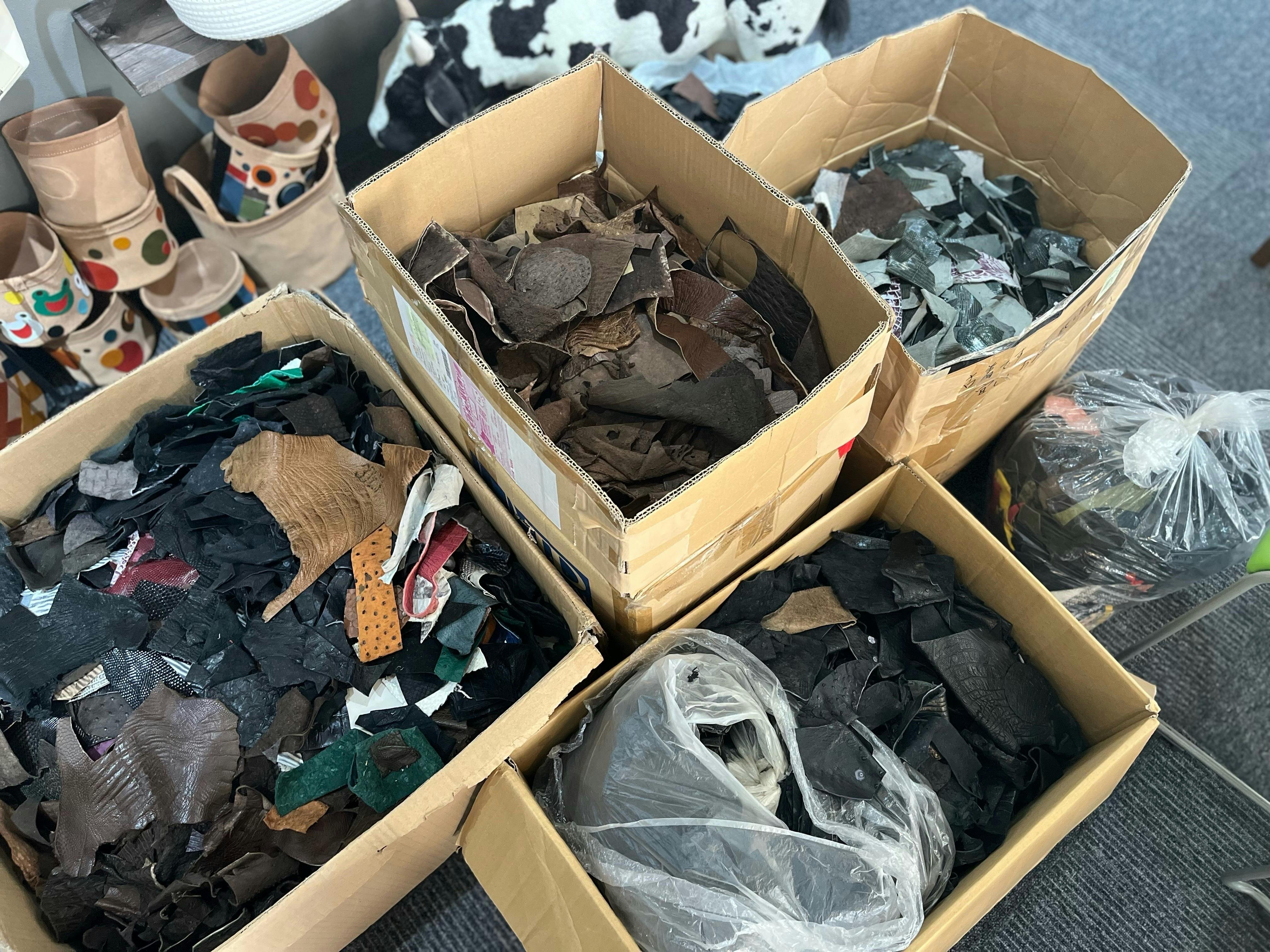 1.2022年10月に段ボール8箱のエキゾチックレザーが事業所に到着。