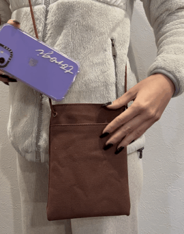 外ポケットもついているので、シンプルな作りでも使い勝手抜群!スマホと財布が入り、気軽に身軽で出かけられる!!