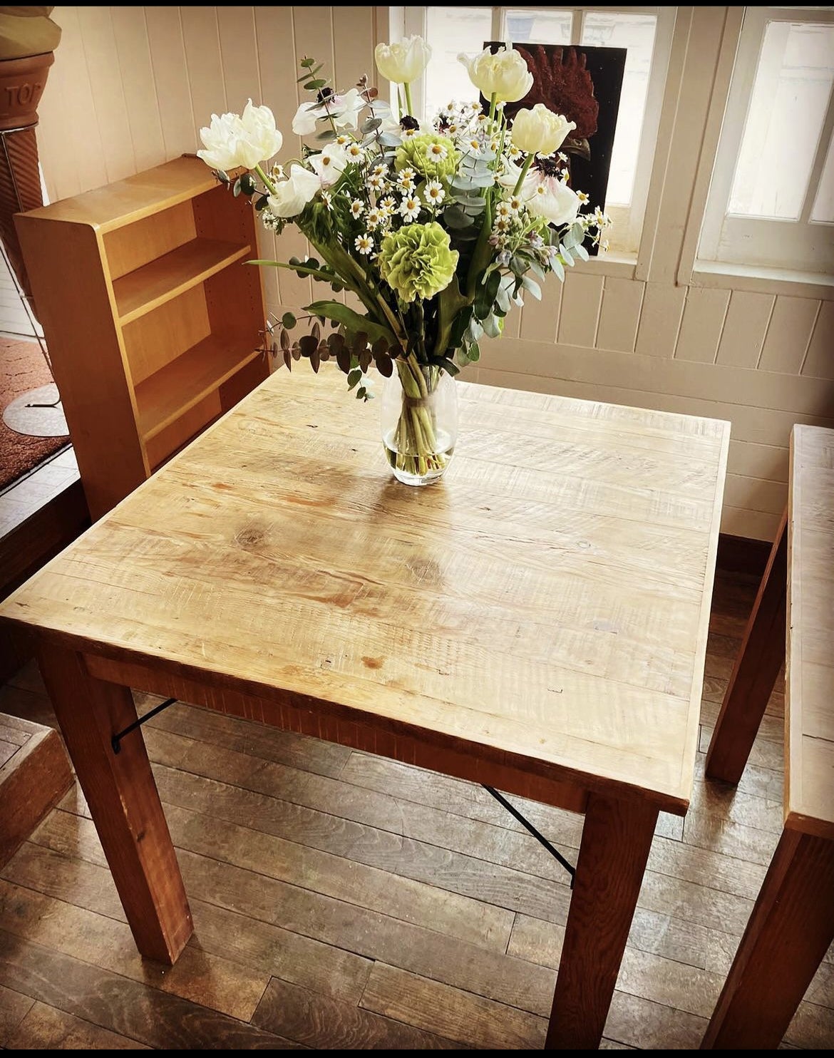 先日閉店してしまった店舗様より、調理器具などを買わせていただきましたが、その時に素敵なテーブル達との出会いがありました。