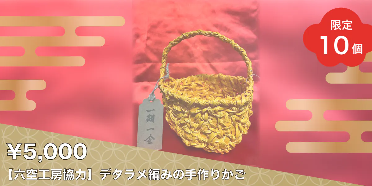 今日に返礼品のご紹介は六空工房の川原千明さんの、デタラメ編みのかごです。