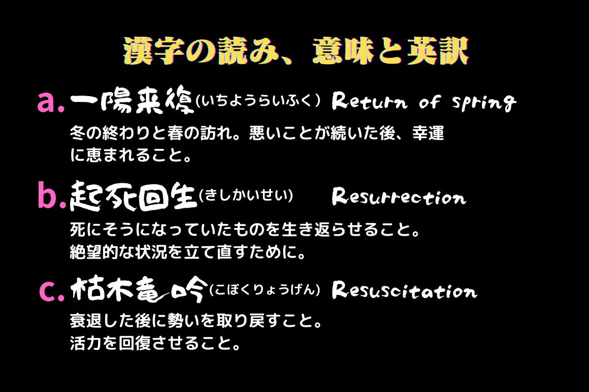 ◆日本でよく使われる復活を意味する四字熟語