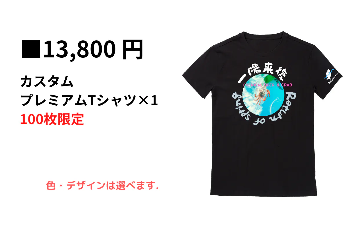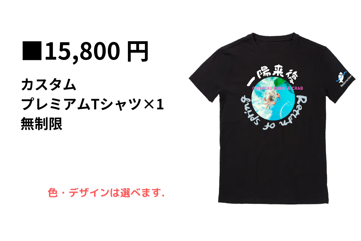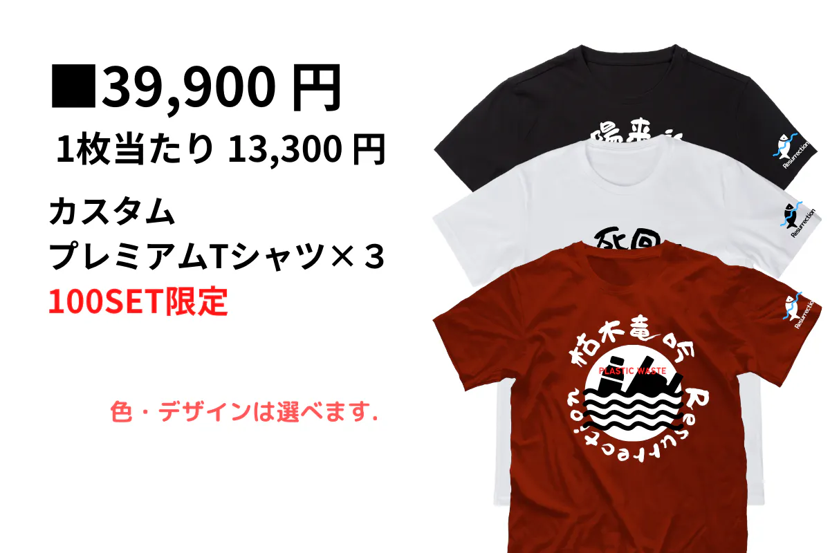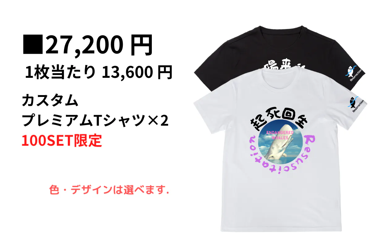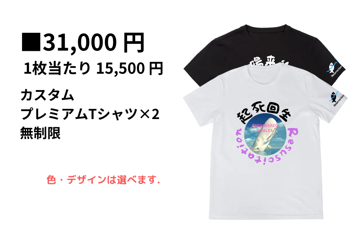 ご支援いただいた方には、返礼品として、「海と魚たちの復活をイメージしたあなたがカスタマイズするプレミアムTシャツ」を進呈致します。 詳細は下部でご案内いたします。