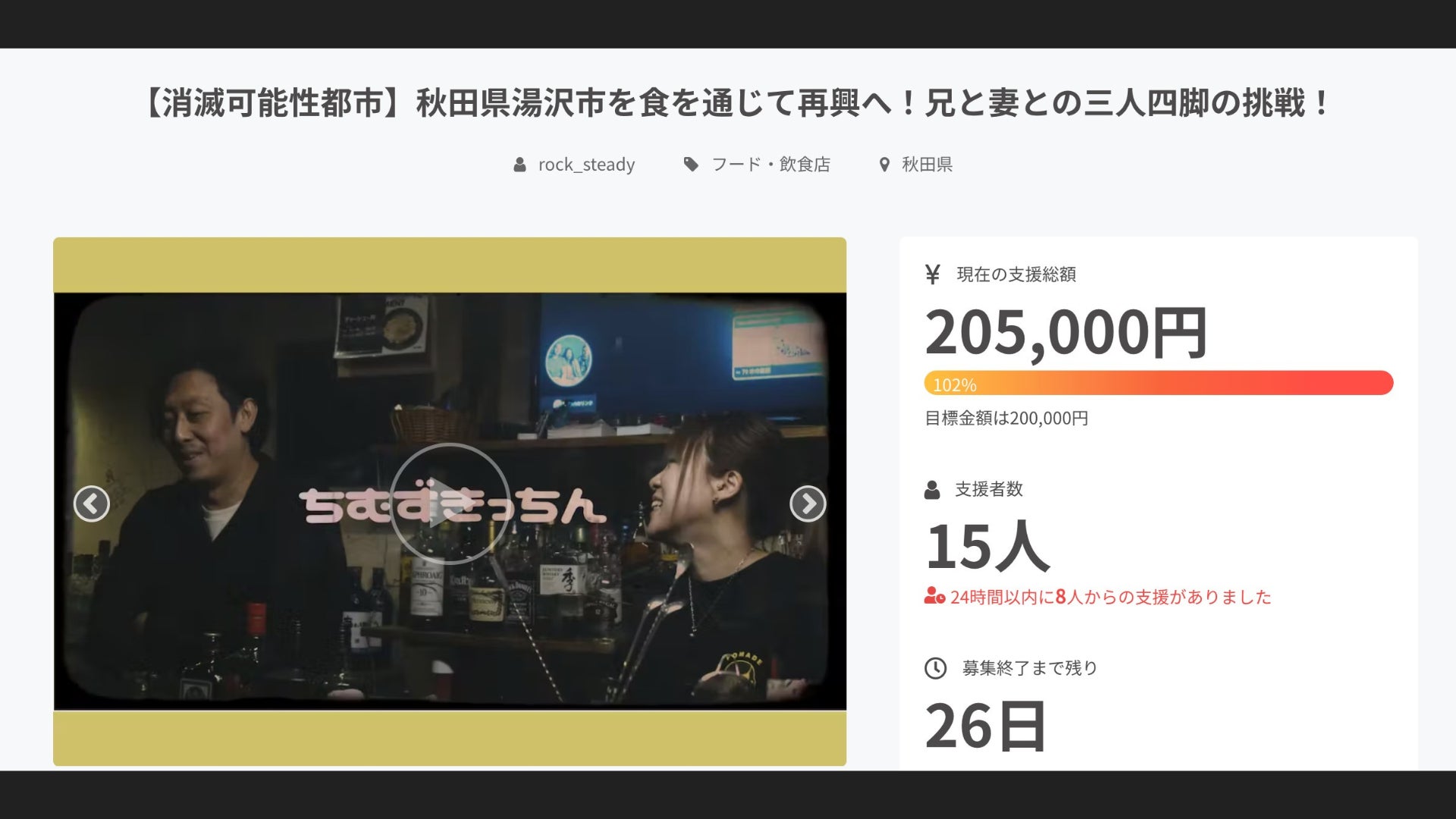 公開後、4日間にして目標金額の20万円に達成することができました。