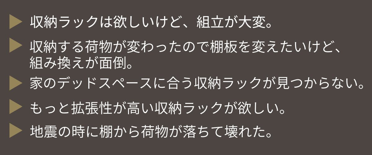 収納ラックを使う上で、こんな不満を感じたことはありませんか?
